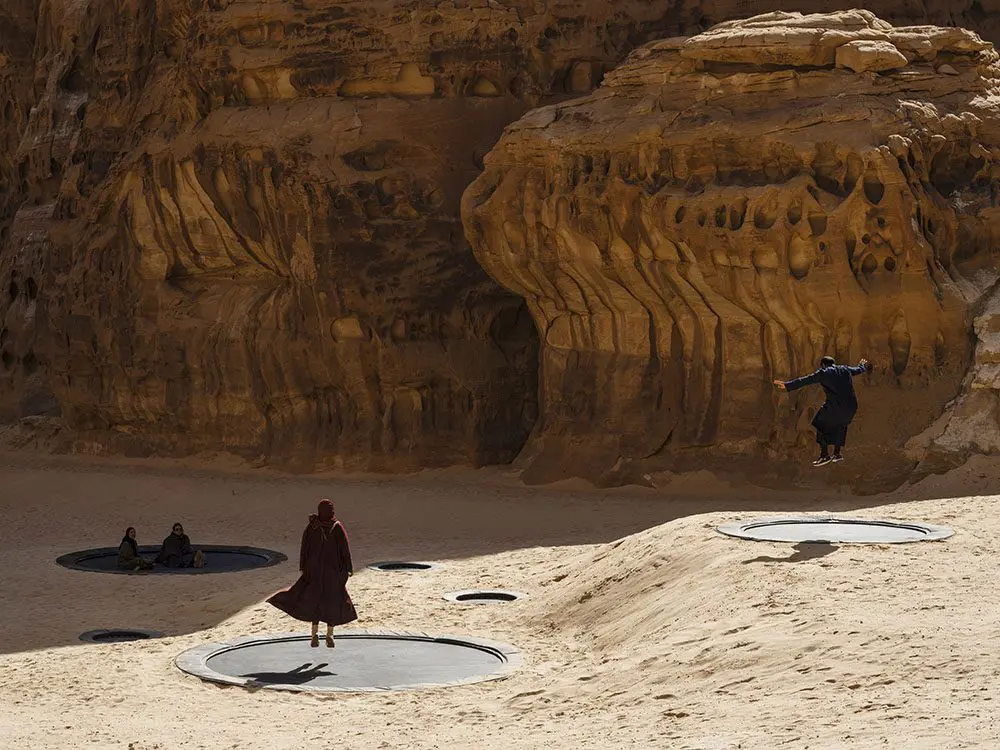 Also drawn to the old town and its stories is Saudi artist Manal AlDowayan. She has visited more than 25 times and says she is “addicted to the place and its people”. The artwork she created for Desert X AlUla, Now You See Me, Now You Don’t, is in the grounds of the Habitas hotel and has become an integral part of the landscape. Guests are welcome to interact with the artwork. A cluster of trampolines hidden behind dramatic rock outcrops, the work represents environmental challenges and climate change, an issue that hit home when AlDowayan first saw palm trees dying due to falling water tables. It was the ephemeral nature of a puddle seen on a visit to AlUla that inspired her.