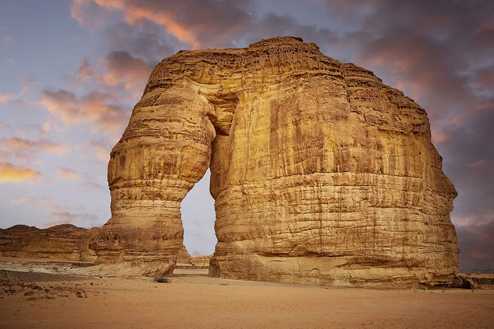Hero image: Carved out of a solitary rock, the Tomb of Lihyan, Son of Kuza is the largest and most impressive in Hegra, but this tomb was never finished. Elephant Rock is one of AlUla’s geological marvels. Unlike the ornate facades of Hegra’s Nabataean tombs, this sandstone monolith was shaped by natural forces. Bottom, Maraya, in the Ashar Valley, is the world’s largest mirrored building. Tomb and Elephant Rock photos: Xavier Arnau/iStock; Maraya: Courtesy of Royal Commission for AlUla.