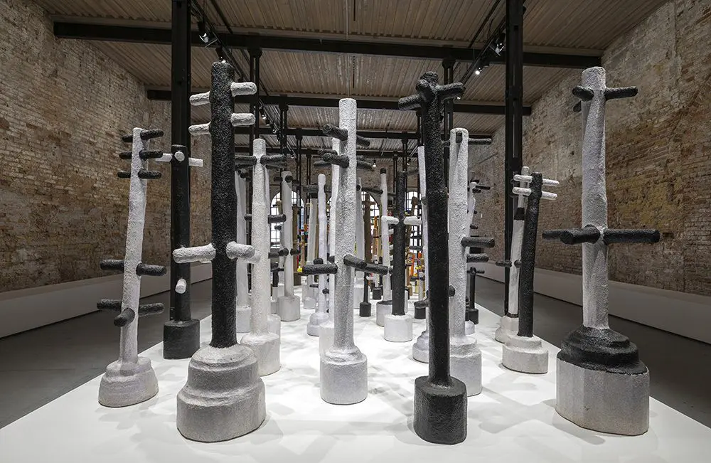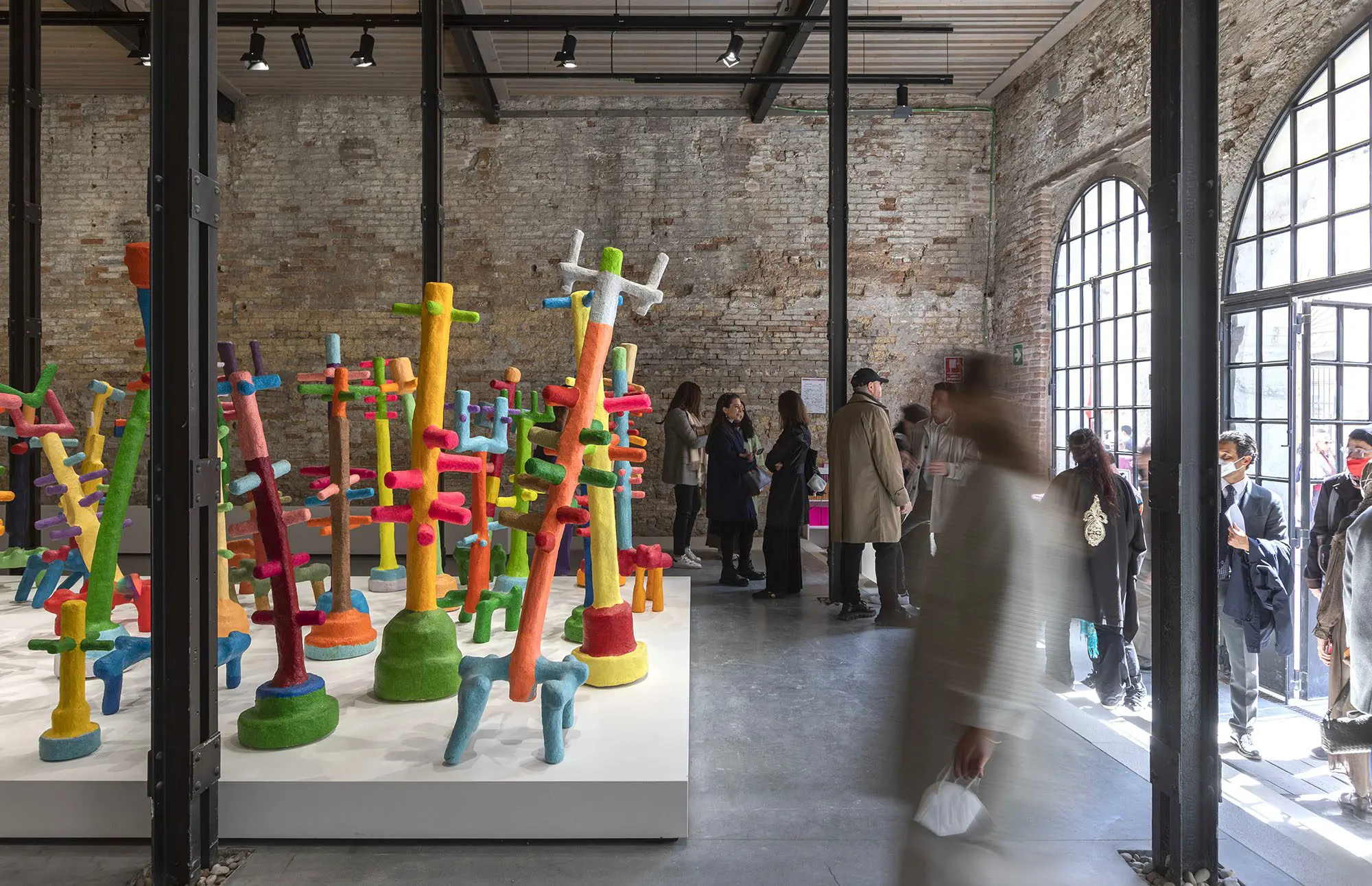 Between Sunrise and Sunset, a collection of 128 human-sized sculptural elements, populates the UAE Pavilion in Venice’s former shipyard district, the Arsenale. The elements ask for “a non-verbal comprehension,” Allison says. “This is the largest piece [Ibrahim] has ever made and it is not something you can really explain. You have to experience it to understand it. It is our hope that this will open up curiosity and other perspectives on the people and the landscapes of the UAE.”