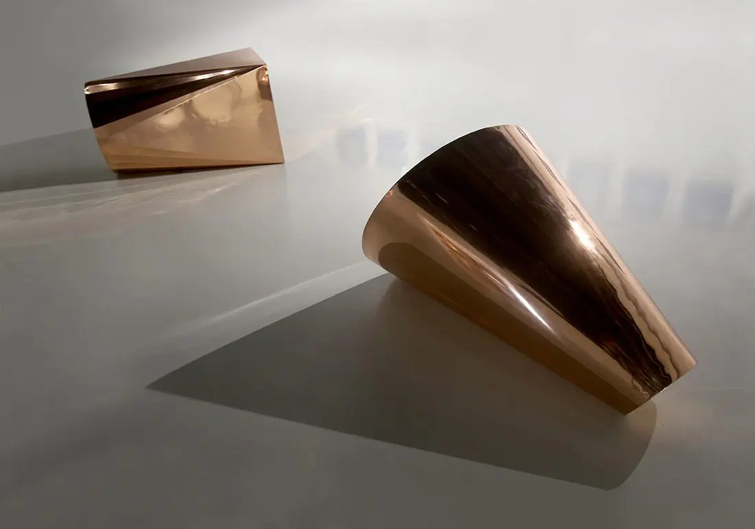 This multiplicity of meanings was summarised most clearly in two copper sculptures—We Met Halfway (2020)—which were imbued with latent mathematical formulae that changed their shapes. One sculpture was a square at one end and a circle at the other. But where is the exact moment of this metamorphosis? It remains a riddle.