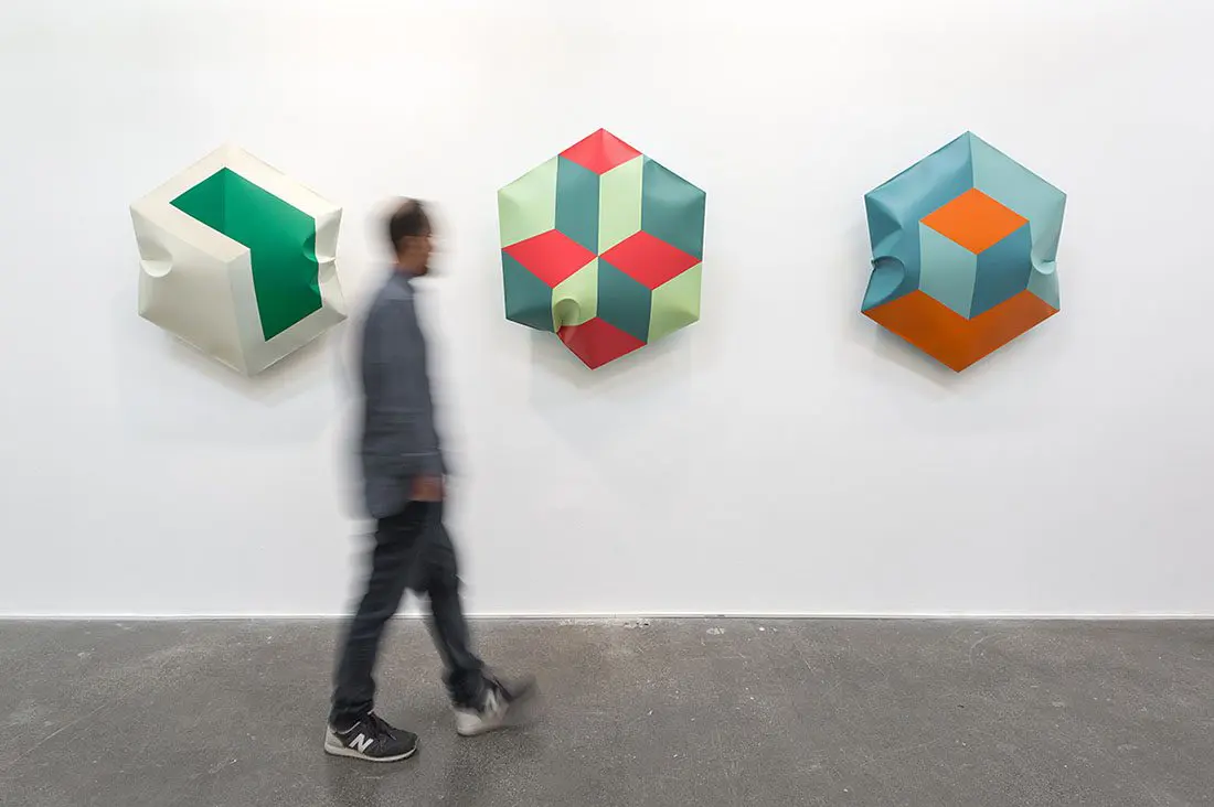 One sculpture is a square at one end and at the other it is a circle, but where, the viewer can scrutinise, is the exact moment of this metamorphosis?