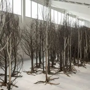 “[My] previous works were merely a formal invitation to engage the spectator in a direct sensorial, physical engagement,” says the artist in a transcript conversation printed in the catalogue for the show. “Nonetheless, in this current body of work, there’s a new kind of invitation, an invitation to the audience through poetic objects that express emotions.”