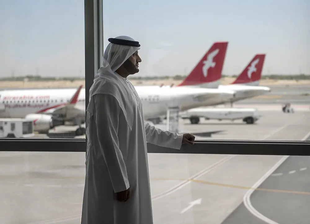It is a hot afternoon in May, but the terminal of Sharjah Airport is airy and cool. Passengers pulling bags cross paths under the decorated domed ceiling of the main concourse—the largest of three domes that dominate the terminal’s silhouette—as they hurry to check in for flights that will radiate across the region, to Chittagong, Najaf, Cairo, Karachi, Baku, Trivandrum. Following a two-year shock that pushed aviation to its limits, air travel is back.