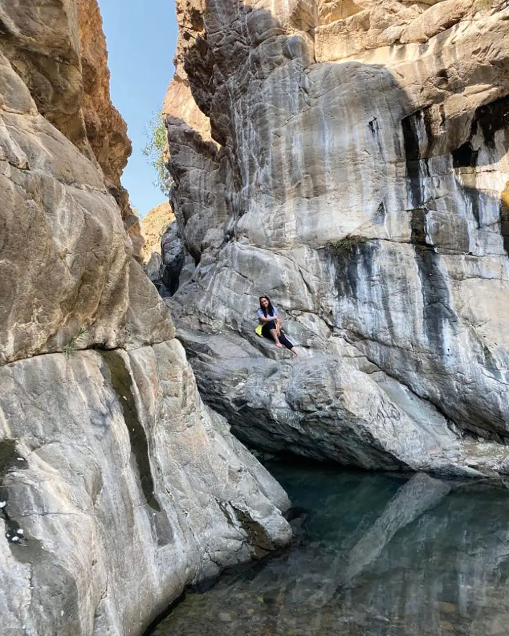 One of my favourite things to do in Sharjah when the weather is cooler is to spend time in nature and take advantage of all the wonderful and diverse landscapes the emirate has to offer. I set out to explore Wadi Shees, near Masafi in the eastern part of Sharjah, a little over an hour’s drive from the centre of the city. I drove through narrow mountain passes in a 4x4 and arrived at the wadi, which is surrounded by the spectacular Hajar Mountains, it’s breathtaking. I waded barefoot through a small pond that connects to the wadi and spent hours just being in nature, climbing into little caves over the water, taking photographs and enjoying the sounds of the birds, the flowing water and the buzzing of some of the most brightly coloured dragonflies I have ever seen. Hiking is one of my favourite activities, so after swimming through the wadi and climbing some of the rocks, I set out to explore the surrounding area. On top of the mountain are old abandoned homes with brightly coloured gates. I spent hours wandering around the little village and climbing as high as I could. I even tried to out-climb a mountain goat. This is definitely a place that I would highly recommend you visit.