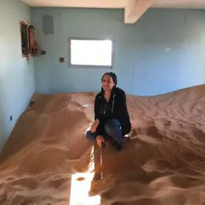 One of my favourite things to do in Sharjah when the weather is cooler is to spend time in nature and take advantage of all the wonderful and diverse landscapes the emirate has to offer. I set out to explore Wadi Shees, near Masafi in the eastern part of Sharjah, a little over an hour’s drive from the centre of the city. I drove through narrow mountain passes in a 4x4 and arrived at the wadi, which is surrounded by the spectacular Hajar Mountains, it’s breathtaking. I waded barefoot through a small pond that connects to the wadi and spent hours just being in nature, climbing into little caves over the water, taking photographs and enjoying the sounds of the birds, the flowing water and the buzzing of some of the most brightly coloured dragonflies I have ever seen. Hiking is one of my favourite activities, so after swimming through the wadi and climbing some of the rocks, I set out to explore the surrounding area. On top of the mountain are old abandoned homes with brightly coloured gates. I spent hours wandering around the little village and climbing as high as I could. I even tried to out-climb a mountain goat. This is definitely a place that I would highly recommend you visit.
