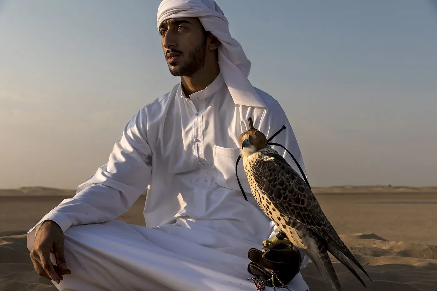 BRENT STIRTON Starting before dawn, Sheikh Rashid Bin Butti Bin Maktoum Bin Juma Al Maktoum, a member of the Dubai royal family, trains his falcons in the desert outside Dubai.