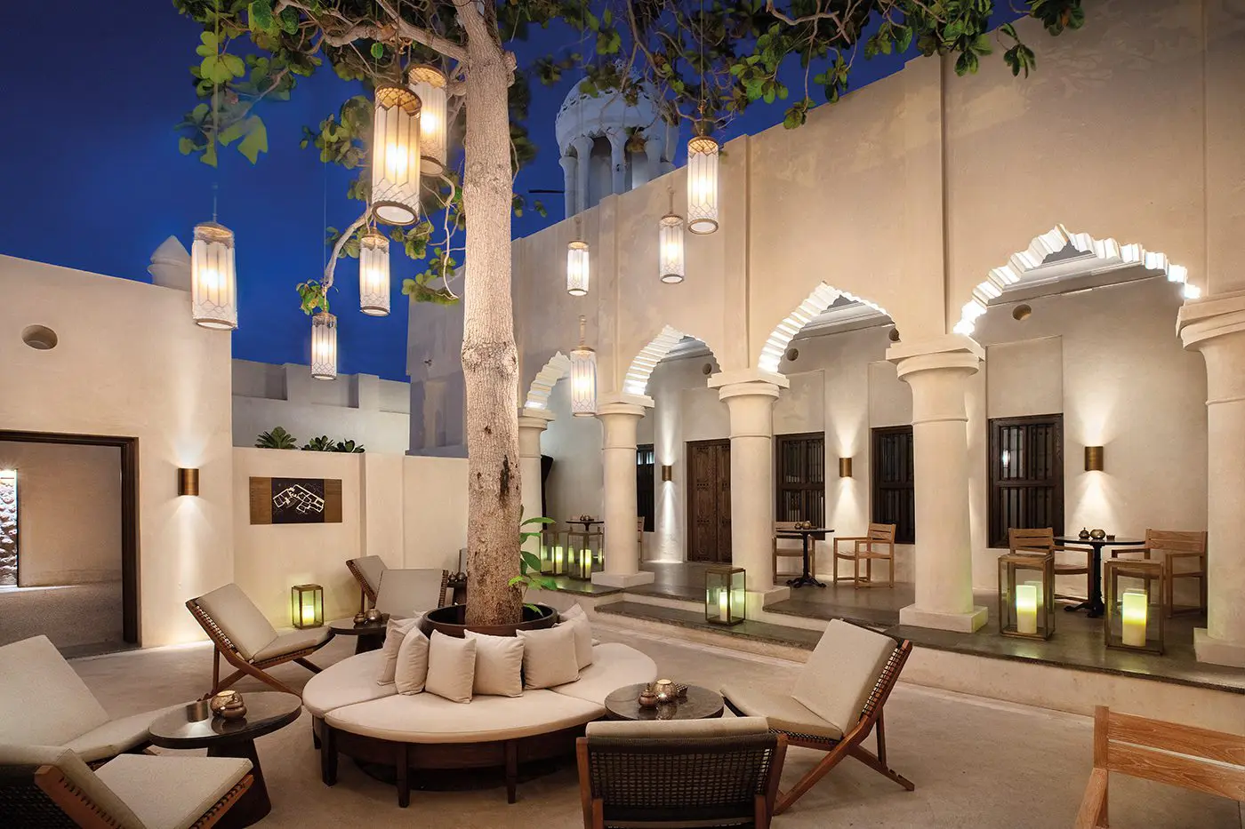 Enter a dream from 1,001 Arabian Nights: Thick coral walls muffle the bustle of the city outside. In the courtyards, birds warble in the shade of trees. You navigate a warren of narrow alleyways, now private, that respect the same footprint from hundreds of years before. The cool interiors offer respite from the blinding Gulf sun, their harmonious furnishings made by local artisans’ hands.