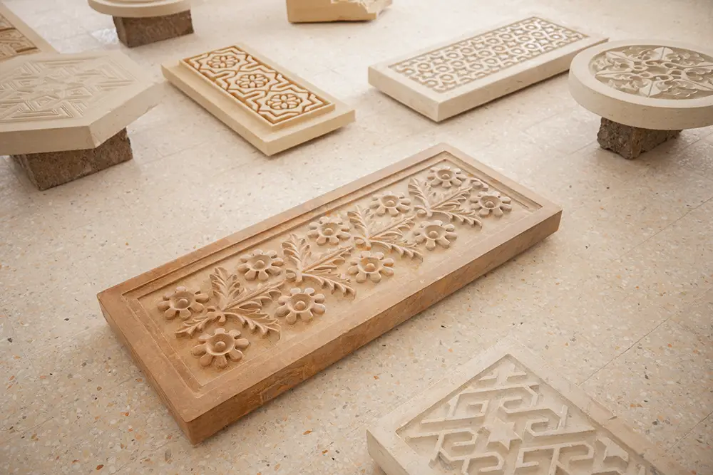 For Awartani, collaboration with artisans is fundamental. Her 2023 work When the Dust of Conflict Settles was created with a group of Syrian apprentice stonemasons participating in a World Monuments Fund training programme in Jordan, having left their home cities. The work—a series of hand carvings on griesa, jerashi, madaba, hoota and qassimi stone—was intended to bring awareness to the importance of traditional knowledge in reconstructing the future.