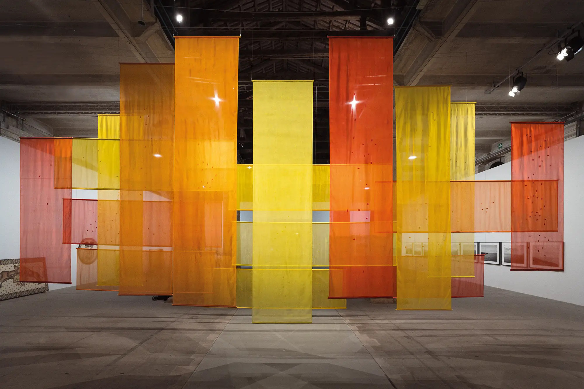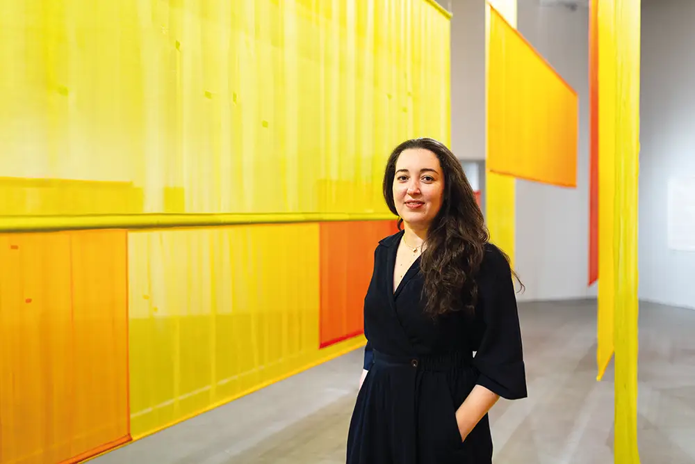 The work not only places emphasis on lost monuments, but also on the slow disappearance of craftsmanship. The silk was handmade and dyed with natural pigments—many with medicinal properties—by skilled artisans in Kerala in southern India. “I am a craftswoman, and I am an artist,” Awartani says. “Craft doesn’t need to be extinct, and contemporary art doesn’t need to be confined only to the realms of concept. I find a middle ground between the two.”
