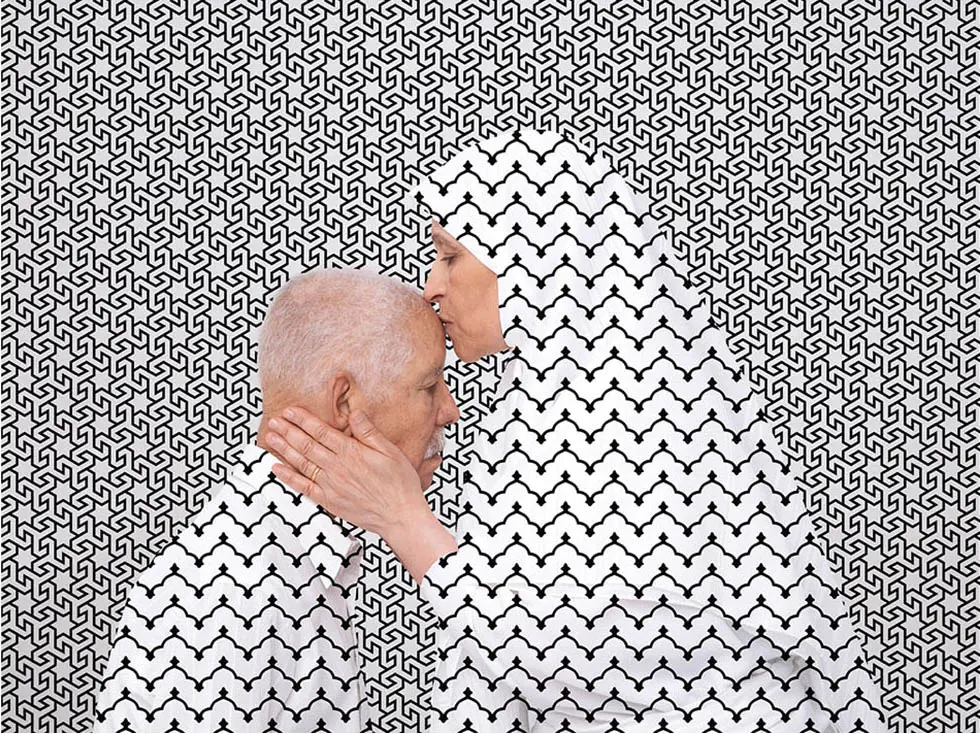 An artist of the same generation, who gained critical acclaim before her premature death in 2020, is Libyan-Canadian Arwa Abouon, whose practice was based on photography. Her most famous work, I’m Sorry / I Forgive You, captures a tender moment between her parents. It incorporates zellij, a traditional North African tile work, and has been exhibited in institutions around the world.
