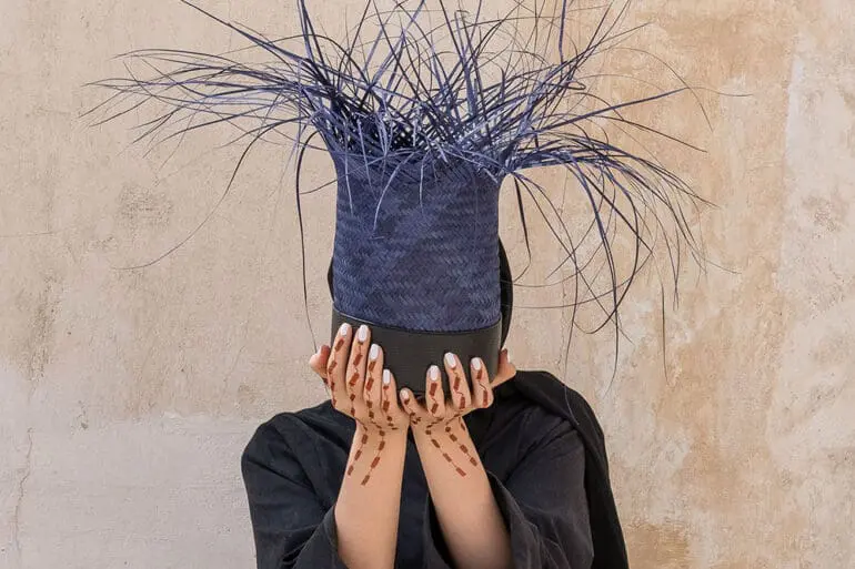 To protect the artwork from the sun, light is filtered by a complex geometric canopy inspired by Emirati weaving techniques and reminiscent of the Louvre Abu Dhabi’s iconic roof structure. Before founding their studio, Rodriguez-Leal and Wrzask were part of Ateliers Jean Nouvel’s core team of architects designing the Louvre Abu Dhabi.