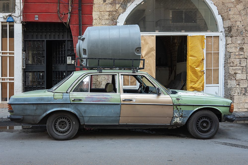 CISTERN VEHICLE (2023), top, from the Utilities series. Residents turned to private water companies to fill tanks and cisterns as water shortages became prevalent. Below, FULL FRAME. Prior to the port explosion, Mrad had been documenting the city’s Ottoman and French Mandate-era mansions.