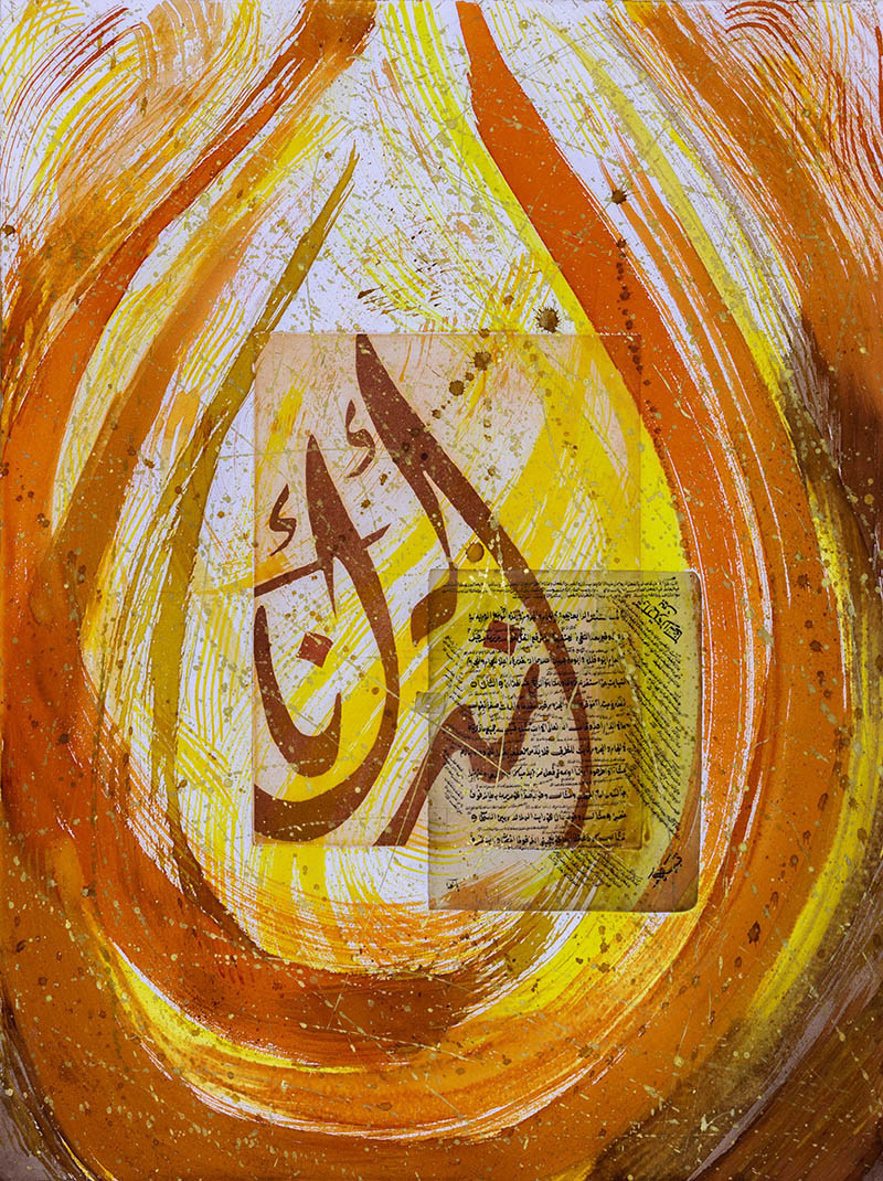 I Am You (2008), by Jordanian painter Wijdan, is an ode to the Sufi interpretation of Islam and pays tribute to the beauty of Arabic calligraphy. Wijdan / Jordan National Gallery of Fine Arts.