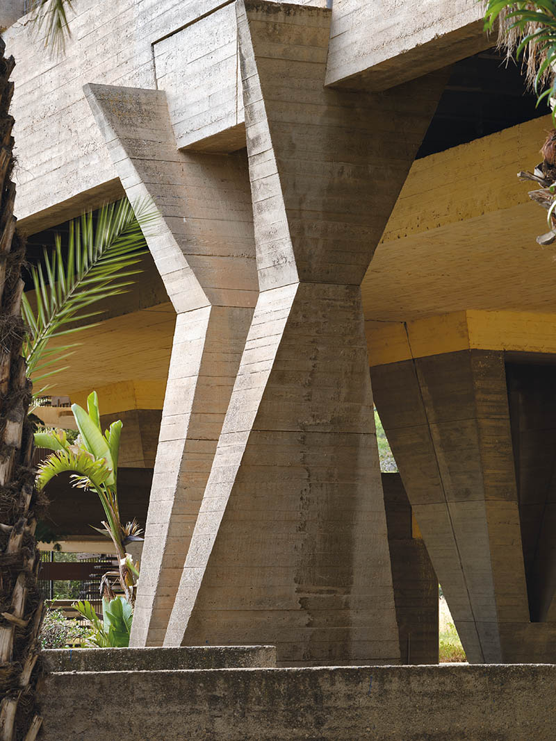 “Agadir was a training ground for architects, urban planners, landscape architects, construction companies, and even the state,” El Moumni says. “They created an urban code. There could be different typologies; the concrete should not be covered entirely; buildings should show their structure—Brutalism.” It was both a stylistic and political statement, reassuring a shaken public of the solidity of the new buildings and quietly refuting colonial stereotypes that Moroccans did not “get” modernity.