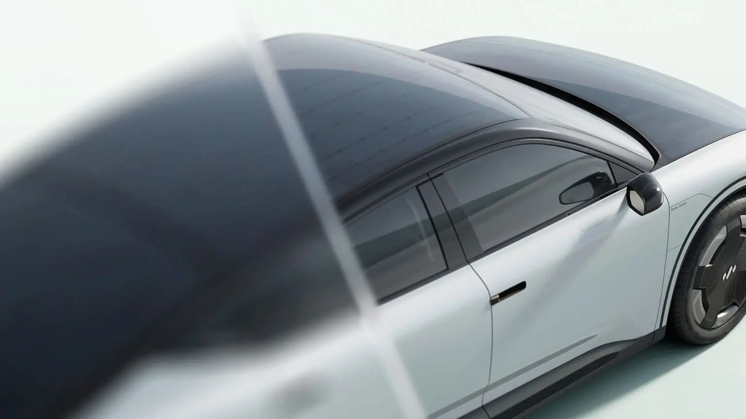 The sleek, five-seat car sports a two-tone look, cool grey on the chassis and a polished black that arcs from the bonnet to the aerodynamic hatchback. But on closer look, the black is actually monocrystalline silicon solar cells. This car can run on the sun.
