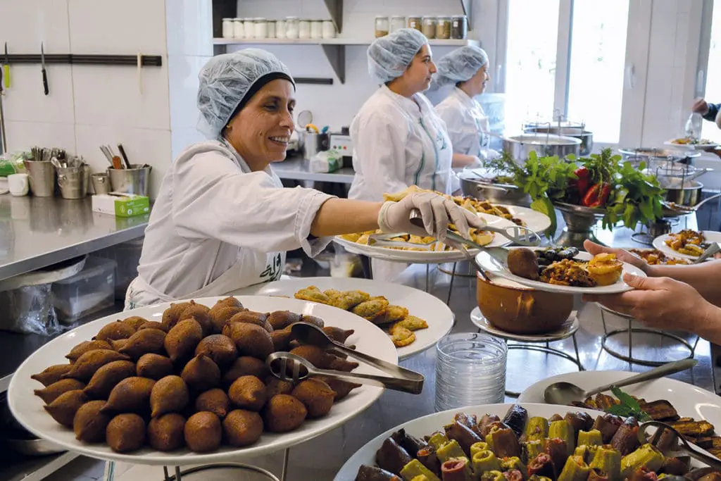 Deir El Qamar is a wonderful place to delve into Lebanon’s culinary heritage and spend the night. Located a few minutes’ drive from the village is Beit El Qamar, a boutique hotel with cosy rustic décor that houses a branch of slow-food pioneer Kamal Mouzawak’s famous restaurant, Tawlet. During weekends and holidays, it serves a sumptuous buffet made by local women who grew up cooking traditional home food no longer served in most Lebanese restaurants. Alongside the traditional mezze staples—many of which are given a local twist—are main dishes passed down through the generations and unique to the Chouf region, made using local ingredients. Outdoor cooking stations serve skewers of grilled meat and hot falafel, crisp and light as air, beside rustic wooden tables set amid a shady garden. For dessert, there are cakes made with saffron and biscuits infused with dibs roman—tangy pomegranate molasses. The local specialty is tamriyyeh, thin sheets of filo pastry filled with semolina paste and flavoured with orange blossom and rose water, deep fried to order and topped with icing sugar.