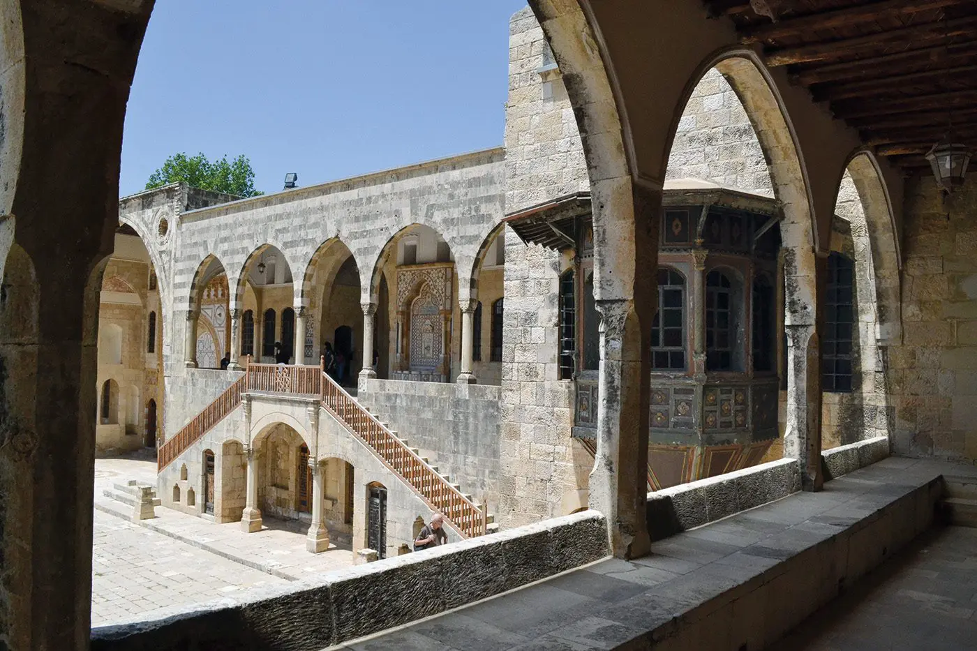 Two small girls perch on the stone steps of Beiteddine Palace, holding a mobile phone at arm’s length to snap a selfie. Behind them, children on a school trip scamper across the flagstones of a large sunlit courtyard, splashing each other with water from a traditional stone fountain. Built between 1788 and 1818 by Emir Bechir Chehab II, an Ottoman governor, Beiteddine Palace is one of Lebanon’s greatest treasures. Some 45 kilometres from Beirut in the Chouf Mountains, it is a masterpiece of traditional Arab architecture, featuring peaceful courtyards and gardens, soaring stone arcades, monumental gates surrounded by inlaid stonework and hand-carved wooden ceilings.