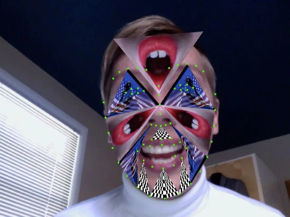 YOGA / LAKES (2017, above) Video installation by Cory Arcangel. THE FUTURE OF TELEVISION (2012, below) Jeremy Bailey. In the future, as the artist imagines it, screens would be embedded in our faces, with content determined by our mood and controlled through facial movements.