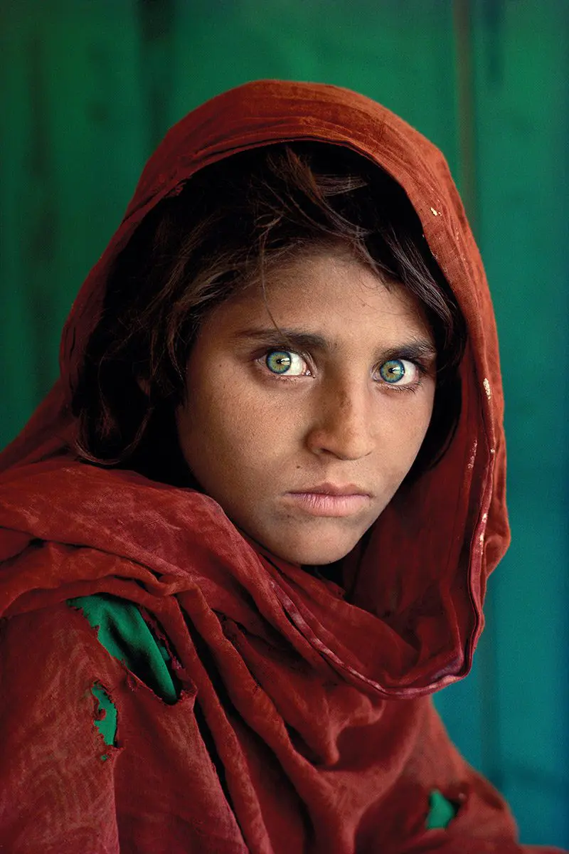 Beirut, Lebanon (1982), top. The subject’s colourful clothing contrasts with the city’s devastation. Afghan Girl, Peshawar, Pakistan (1984), above, is McCurry’s most famous photo.