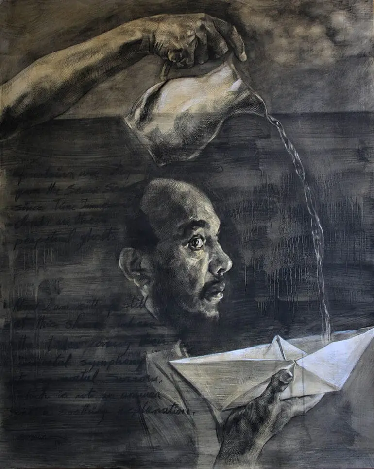 Ermias Ekube (b. 1970) is a contemporary artist from Eritrea. He was born and brought up in Addis Ababa, Ethiopia, where he studied at the Addis Ababa University Alle School of Fine Arts and Design. He co-founded the Asmara School of Fine Arts in 1994, where he taught for several years, and mentored young Eritrean artists until he left the country in 2012. He now lives in Sweden and exhibits in Sweden and abroad.