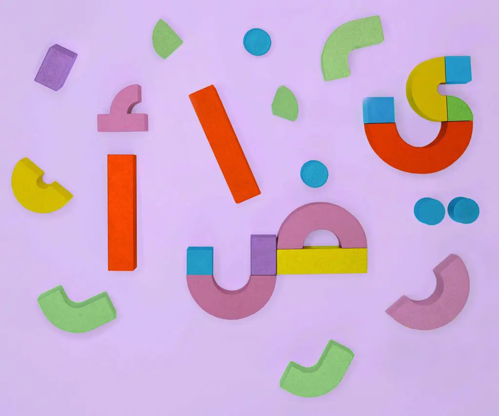 Takween is a toy made up of modular shapes that can be connected to build every letter in the Arabic alphabet. Photo: Lujain Abdulfaraj