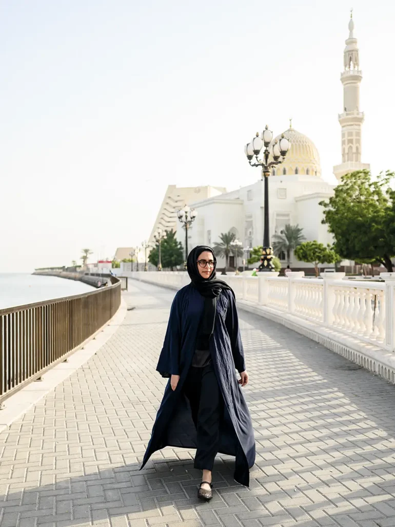 Al Mulla still lives down the beach road from Sharjah Creek and takes it twice a day to go to work, sometimes on foot. “I love the commute,” she says. “It’s the most beautiful part of the day. It makes me look forward to work. I love seeing people starting their day, walking, jogging, riding bikes. The buses picking up kids in the morning and dropping them off at the end of the day. At the Creek, you see people meditating or doing yoga, ladies talking in groups. Farther down, towards the museum, shopkeepers are sweeping their shopfronts. It’s a peaceful start to my day.”