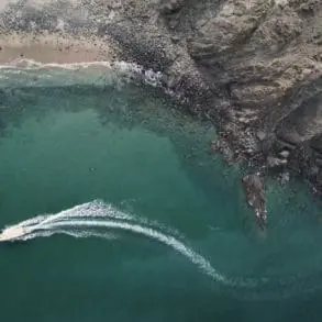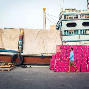 Al Daghari stops and asks me to look closely as he pours water on rocks that line the trail, revealing detailed marine fossils. We’re walking on what used to be the seabed, thrust up two kilometres by the force of the Arabian and Eurasian tectonic plates colliding 80 million years ago. As we approach Al Ayn, the village almost appears to float, a patch of brilliant green fields seemingly suspended above the grey gorge. At its centre is the tiny blue dome of a mosque, surrounded by rosebushes and date palms. It’s here that we balance on the falaj, water running clear and cold beneath our feet. We walk past fields divided into neat, square parcels recently planted with corn. As we pass through the village, we help ourselves to the sticky black dates that one villager has left outside his house for passing visitors, giving us a final burst of energy to descend through the terraces to Ash Shirayjah.
