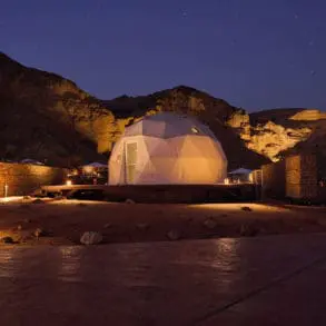 The trail down to the wadi is steep, more of a scramble than a hike, requiring the use of hands for stability as my legs stretch to find toe-holds. By 6:30am we’re at the bottom of the canyon where the wadi flows. The water is brown due to heavy rains a few days earlier, but my sense of achievement means it’s still beautiful.