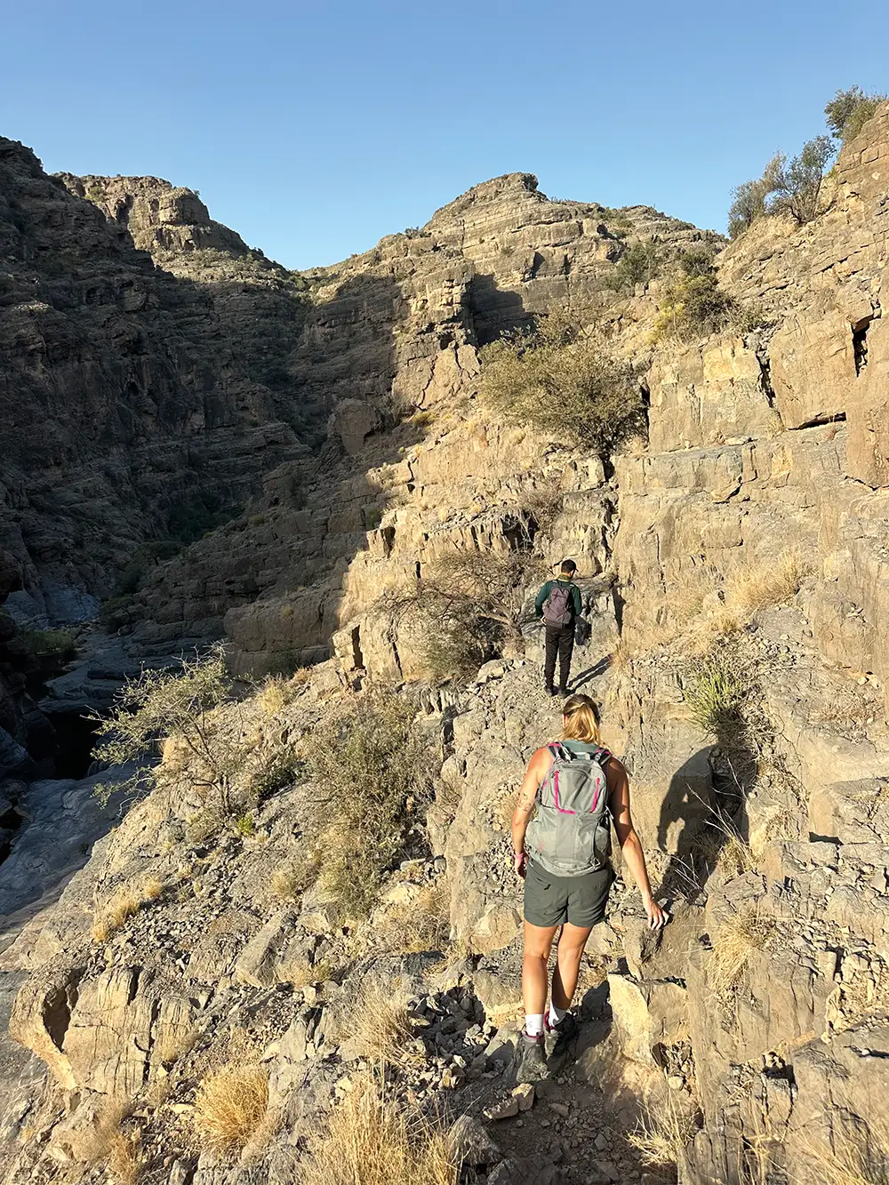 The scramble back up is easier, gravity seeming to pull us skywards rather than threatening to throw us deep into the canyon. We make it to the top quickly. Back at the hotel, I take my weary body to breakfast where I’m presented with figs fresh from the garden, sweet, juicy and still warm from the morning sun. It feels like the green mountain is giving life not only to the figs, grapes and olives that thrive here, but also to a new energy in its old settlements. There’s a soul and a beauty to these remote places that are all their own, worth even the hardest of hikes to get to.