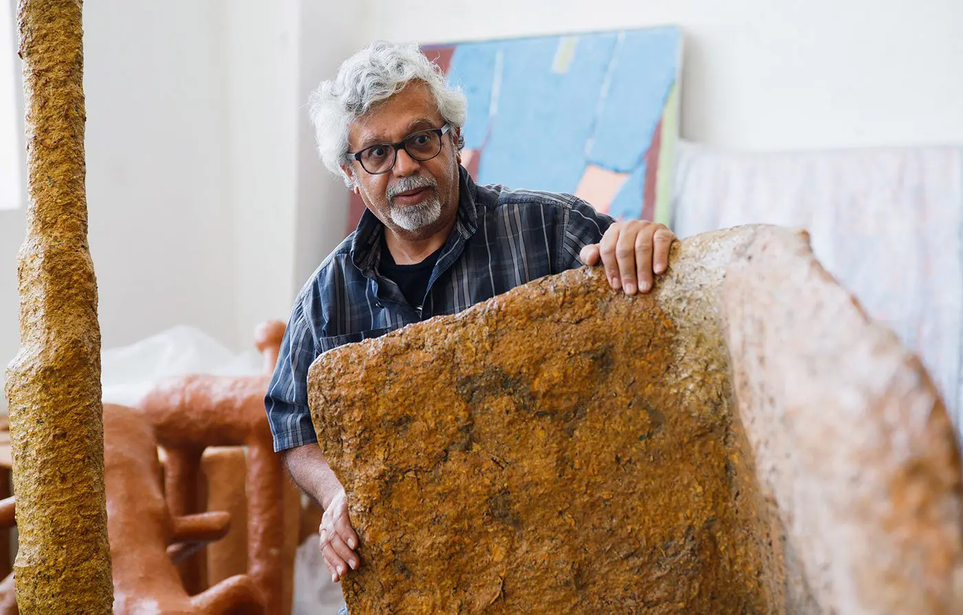 Mohammed Ahmed Ibrahim has never been one to crave wide audiences. For decades, he has worked consistently and instinctively from his home studio in Khorfakkan, between the mountains and the sea. His work draws from nature and some of it is moulded from what he collects during walks foraging in the wilderness.