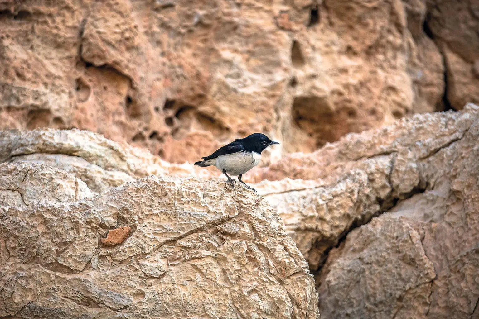 Seasonal rain means that Wadi Naqab is surprisingly green. There are plenty of trees, such as wiry acacia, sidr and the wadi fig, its vibrant leaves curled at the tips. According to Marina Tsaliki, a botanist with the Landscape Agency at Ras Al Khaimah Municipality’s Department of Public Works, around 350 kinds of plants—more than half of the UAE’s 608 species—live in Ras Al Khaimah’s mountains and wadis. Wadi Naqab is particularly diverse, Tsaliki says, adding that after rainstorms, the wadi experiences something akin to a superbloom, with vibrantly coloured annuals that sprout, as if miraculously, from otherwise dry, rocky ground. “It’s literally carpets of annuals,” she says. “Imagine green, flowering carpets. It’s really beautiful.”