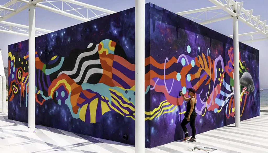 “I think street art is essential in any city,” Saadi says. “Public art is free and accessible for everyone. It doesn’t only brighten up an area and make it happier, but it can inspire and raise awareness. It helps increase the ownership of a place and makes people love and take care of their neighbourhoods and cities more, especially if the art is made by local and resident artists who lived and experienced those places.”