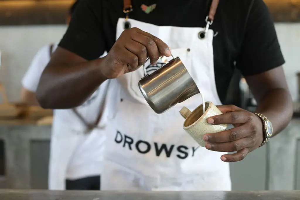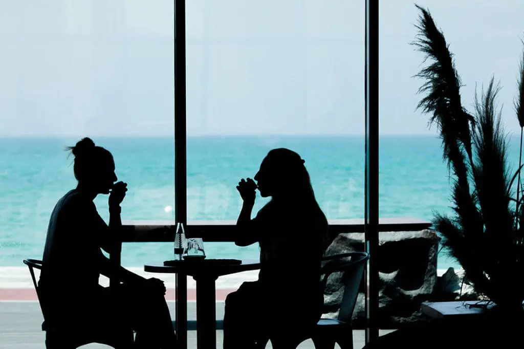 Coffee lover Saif Jasim Almidfa is the owner of Drowsy, a concept coffee shop in the heart of the new corniche development. The café is modern and slick, decorated with the grey rocks of the nearby mountains and a minimal grey concrete, which juxtaposes the old and the new. Its waterfront location offers views across to the mountains it has brought inside.