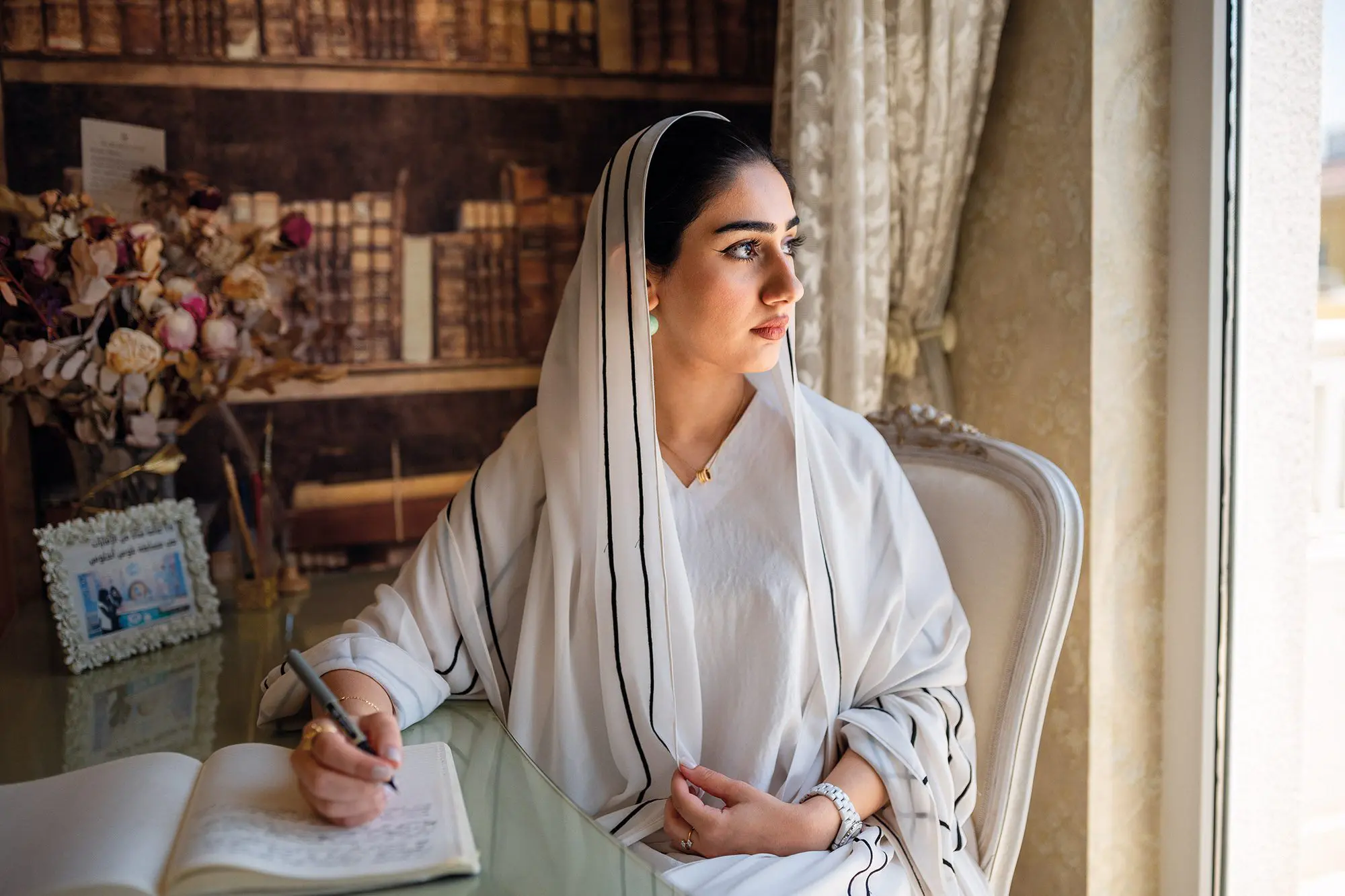 ALIA AL SHAMSI (above) highlights topics such as inclusion and diversity, love and heartbreak. AMAL AL SAHLAWI (below) shares her poetry on social media with over 100,000 followers.