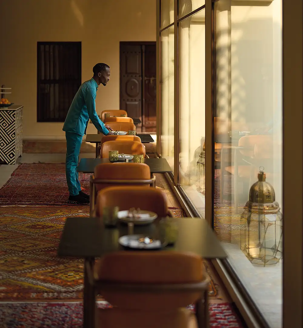 “Each item in Bait Elowal tells a distinct story and carries a palpable sense of place,” she explains. Moroccan rugs are woven using centuries-old techniques, zellij tiles are hand-cut and individually placed, slight variations in each rendering a unique beauty. Indian swings, discovered in the markets of Jaipur, add a playful element. “There was no strict formula, rather an innate instinct for what resonated as authentic and deeply meaningful,” Her Highness says. “The truly rewarding aspect was witnessing how these items, which might individually seem disparate, converged to create a unified harmony.”