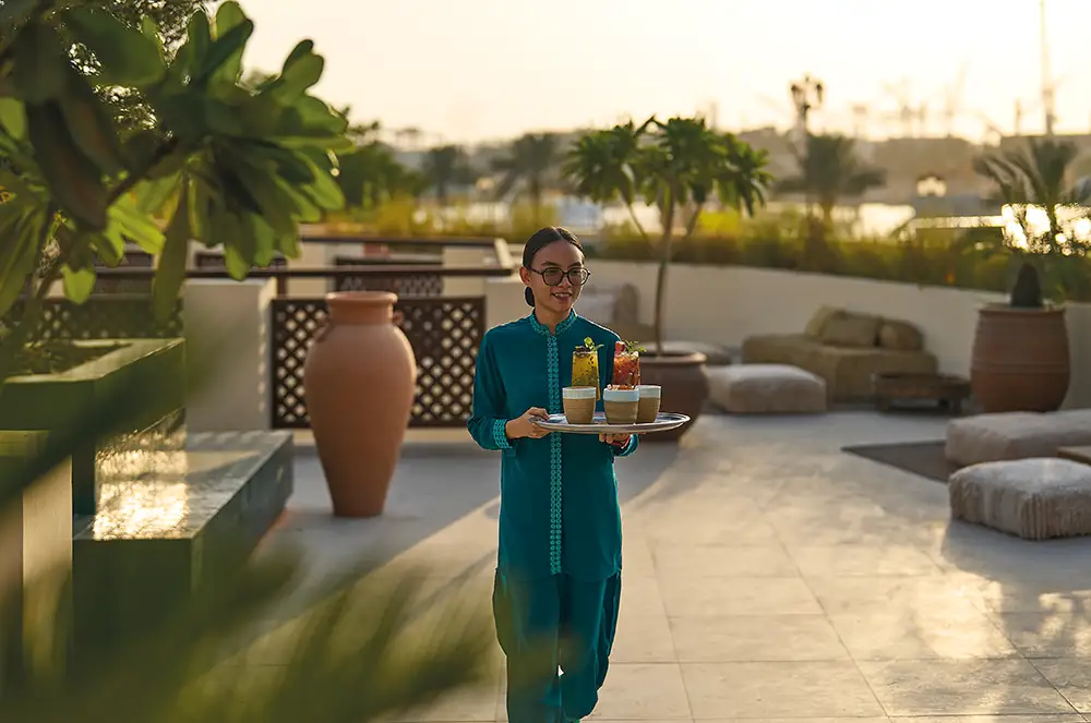 Dining here is itself a voyage, with dishes ranging from Emirati balaleet and smoky tatouka with poached eggs at breakfast, to delicate Borani-e Esfenaj (Persian sauteed spinach), roasted duck with mulberries and preserved lemon, and saffron ferni rice custard with Madagascan vanilla and orange blossom throughout the day. It’s a menu that complements the ambience.