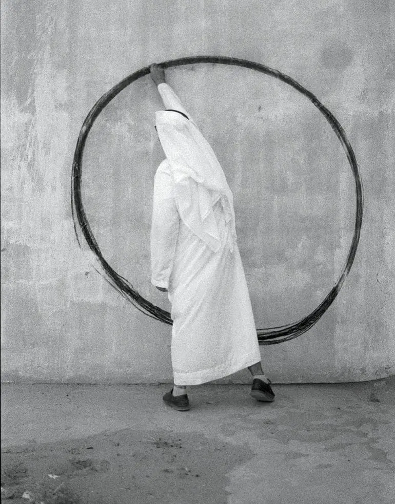 Covid-19 led Ammar Al Attar down the path of performance art. A self-taught artist with his studio in Sharjah, Al Attar has been producing archival and documentary photography for over 10 years while working full time at a government job. In the lead-up to the 2020 lockdown, he had been thinking about a new approach to his art. Having to wear the kandura, or Emirati national dress, for Zoom meetings inspired him to contemplate the “performance” aspect of working from home and to experiment with a new form of art.