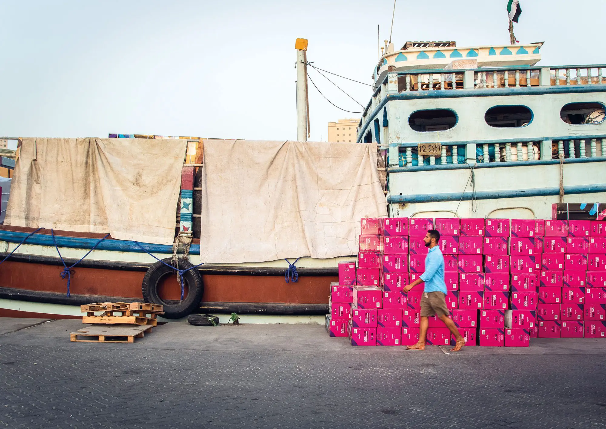 Before Port Khalid, the city’s trade gateway, was moved to the other side of the creek, fenced and professionalised, it occupied the shoreline in front of Sharjah’s Old Souk. Traders would unload goods—from India and Iran—to sell in the marketplace. When he accompanied his mother to the souk—she, like others, would shop for kitchen and homewares here—Ali would watch the boats, impressed by them, their shapes, their colours, the variety of goods they unloaded, and the restless activity of the traders.