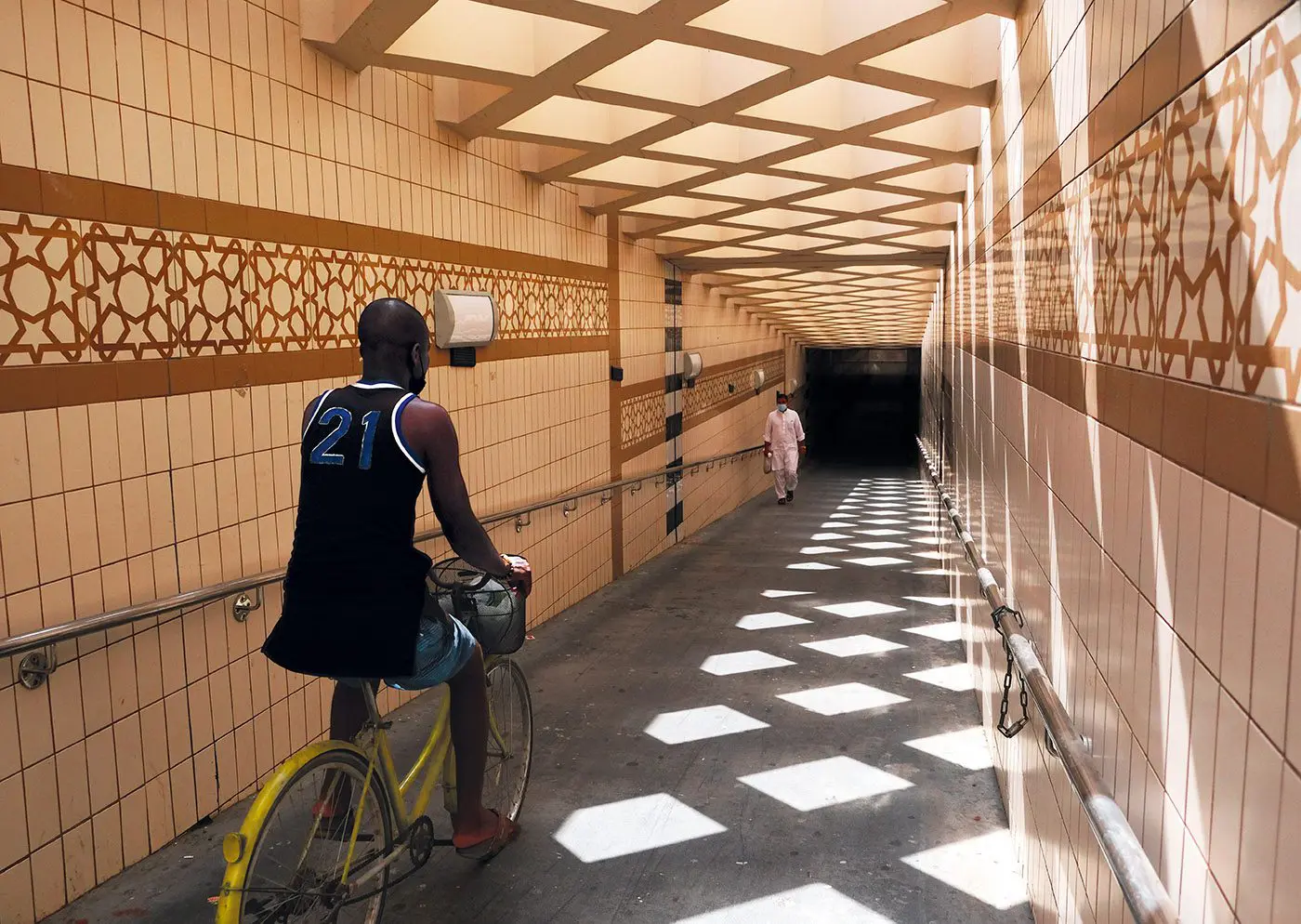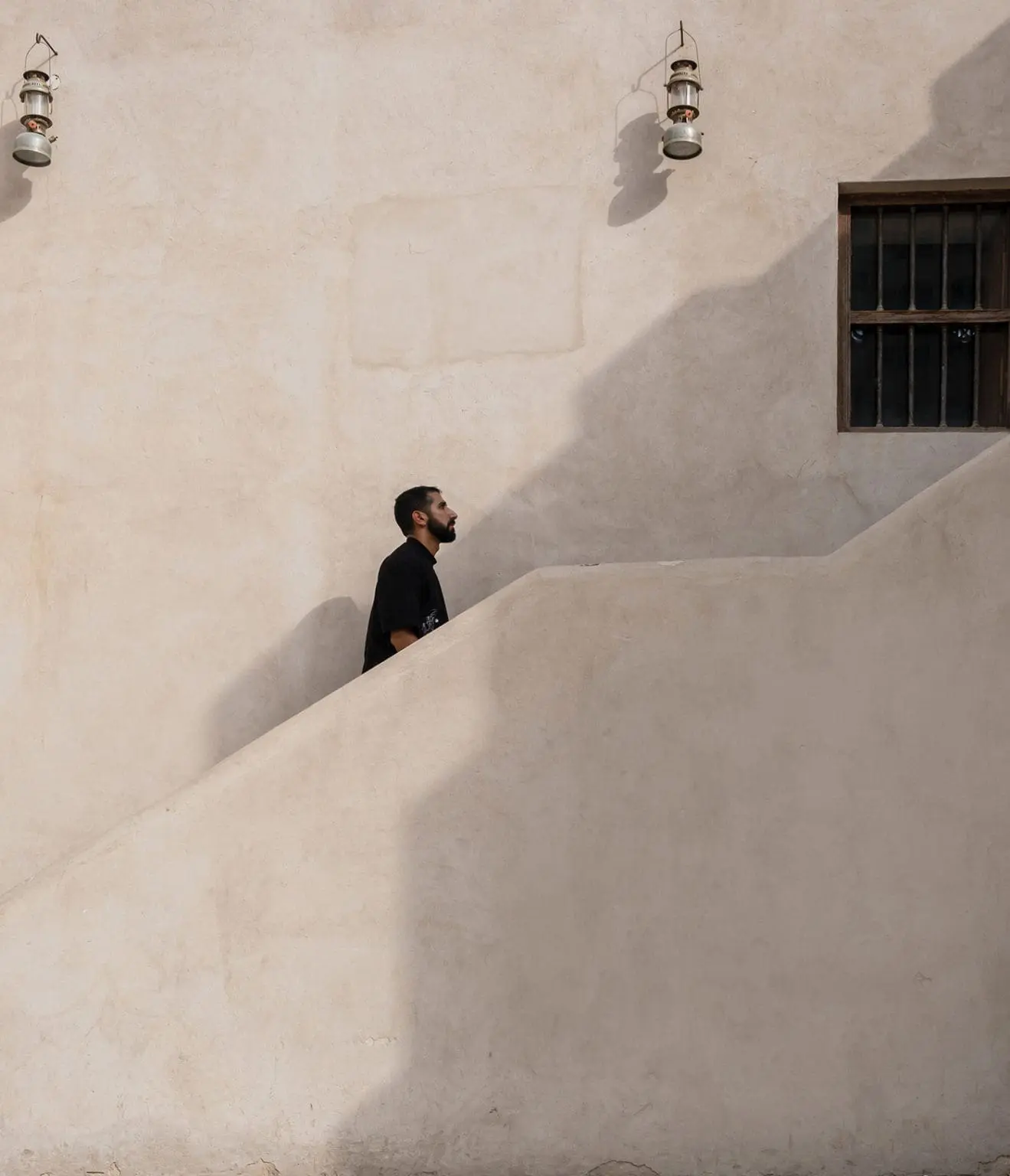 “I’m inspired by natural light. I wish it were used more often in interior design.” In this underpass beneath Al Wahda Street, which emerges next to an old Omani halwa shop, Ali captured the light’s playfulness. How the shadows and the shapes metamorphose as the sun passes overhead, and the light filters through the mashrabiya above. Before cars and taxis crowded Sharjah’s streets, the underpass was the family’s passage from home to the city on foot. The Central Souk, designed by a British architect and opened in 1978, is one of Sharjah’s defining landmarks. The shops inside are a treasure trove of paraphernalia. In this antique shop, on the upper level, are lanterns, clocks, copper pans, telescopes, old photographs and dallahs. “There is a story behind every single piece. When I hold an object, I have a film in my head. The alleys of the souk are a network of history, culture and art.” He went to the souk recently to search for a necklace, one with sentimental value, a replica in fact of a piece he had worn as a child. Armed with a photo, he approached the traders without success. In the last shop he tried, they found it, the last they had. “I wanted something sentimental, something that would connect me to my childhood.” Does he go to the souk often? “No, only for memories. But every time I pass it I try to analyse a new detail of it, and there are always new details.”