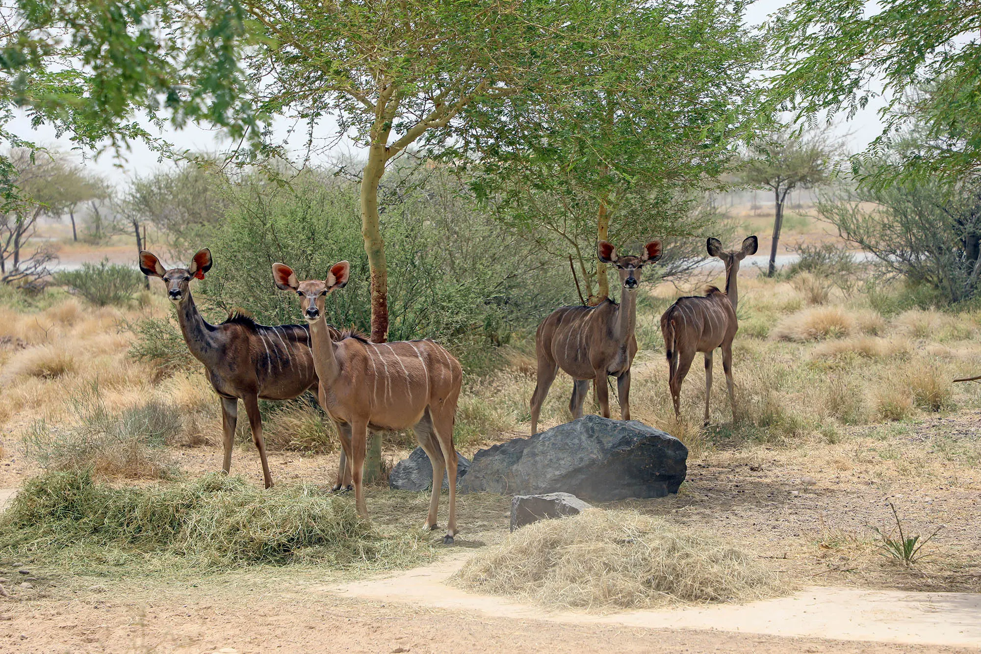 Sharjah Safari stretches over eight square kilometres and is divided into 12 zones that represent the varied terrains of Africa, and the species that call them home. Today, it is home to more than 2,000 animals from 120 species—including African lions, elephants, southern giraffes, gazelles, kudu, Nile crocodiles, flamingos, Aldabra giant tortoises, scimitar-horned oryx, southern ground hornbills and eastern black rhinos—many of which have spent years acclimating since their release. But that is expected to rise to 130 species and 2,500 individuals by the end of the year as more animals are introduced, including ring-tailed lemurs, zebra, Cape buffalo and roan antelope.