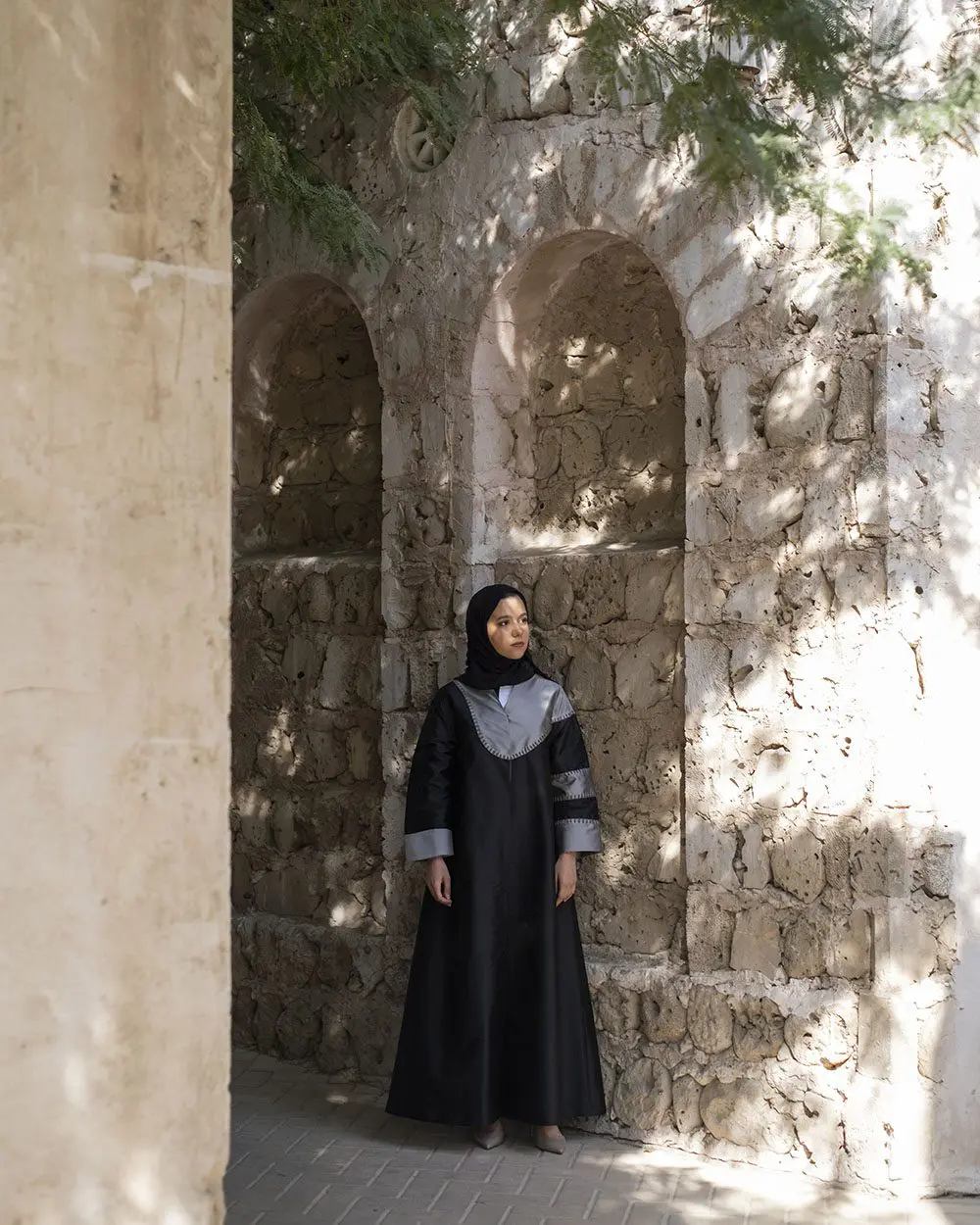 “It’s been restored in a nice way. You can feel the original space—they didn’t take away from the charm and beauty of the original,” AlGhfeli says. “The way the area has been restored without losing its charm and character is inspiring, and it echoes what I strive to do—balancing the old with the new to create a design language that fits into our modern lives but still has this beautiful essence.”