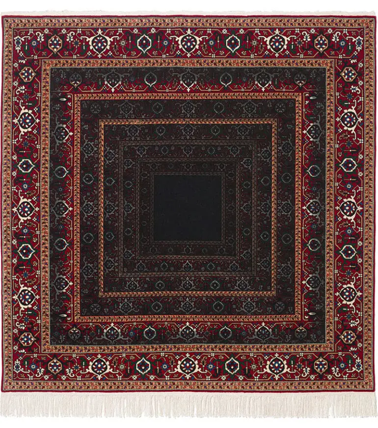 Carpets are not Ahmed’s primary focus however, but rather a means to probe profound questions about humanity. “The carpet is a language and one of the strongest objects of culture, especially in my region,” he explains. Its patterns, he says, are inherited across generations and continue to entrance us because they reflect deep-seated aspects of our psyches. “It gives access to the collective subconscious. The recognisable catches you, and if you can keep hold of this, you can flow from the known to the unknown, from the recognisable to the unrecognisable.”