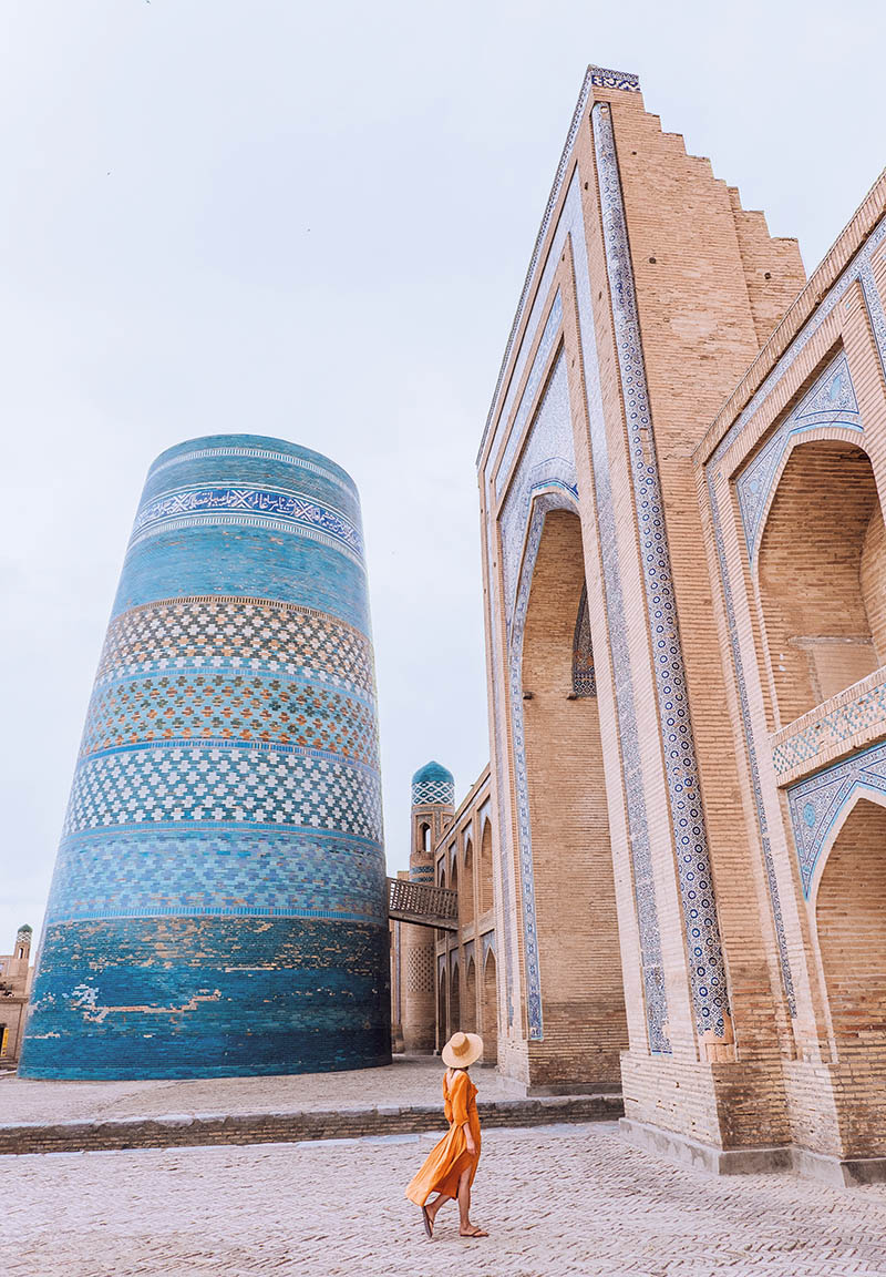 The Kalta Minor minaret in Khiva. Ruler Muhammed Amin Khan wanted a tower so high he could see all the way to Bukhara. Work began in 1851 but halted on his death in 1855, leaving it unfinished. Photo: Henry Wu @ Humminglion.