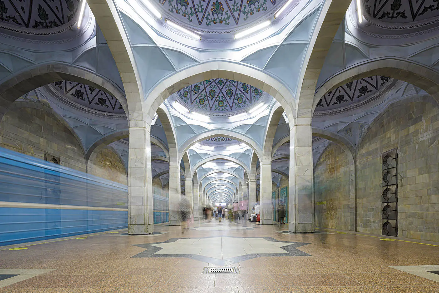 The Ark of Bukhara (top), is a historic fortress dating back to the 5th century. Covering three hectares, it functioned as a self-contained city for Bukhara’s rulers and government. Tashkent (above), is a legacy of the Soviet bid to build a showcase city from the ruins of a devastating earthquake. Its palatial metro stations tell stories inspired by Uzbek and Soviet history. Ark photo: Wael Al Awar; Tashkent: Julian Elliott.