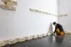 Abdullah Al Saadi, The Slipper’s Journey, Rock 1.1 (2015). Acrylic paint on rock. This series of works comprises 85 small stones and rocks upon which Al Saadi has painted abstract musings. Photo by Roman Mensing, courtesy The National Pavilion UAE—La Biennale Di Venezia.