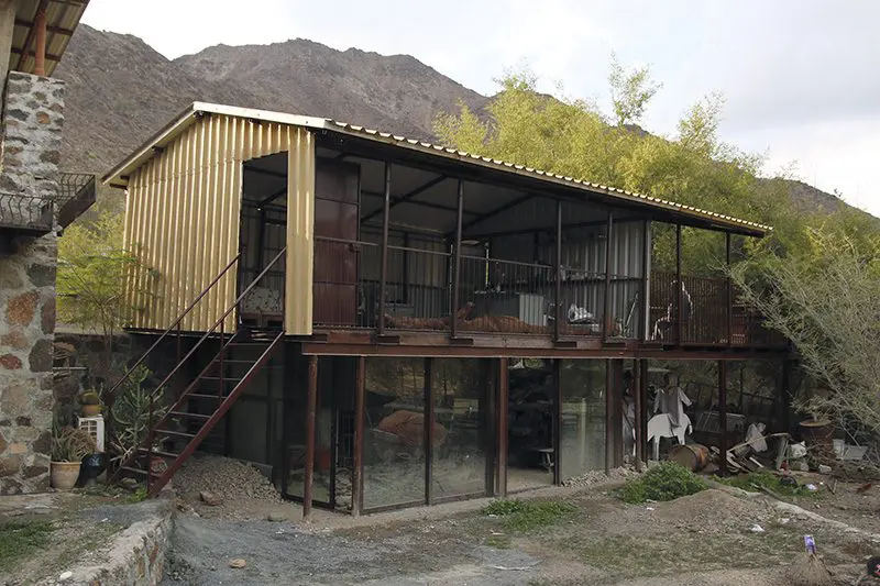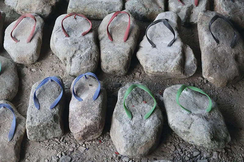 Top, Stone Slippers (2013). A visual metaphor for the life of a wanderer who travels constantly in search of something, but which remains elusive. Al Saadi’s remote studio in the hills around Madha, an Omani enclave south of Khorfakkan. Photos by Haupt and Binder, Universes in Universe.