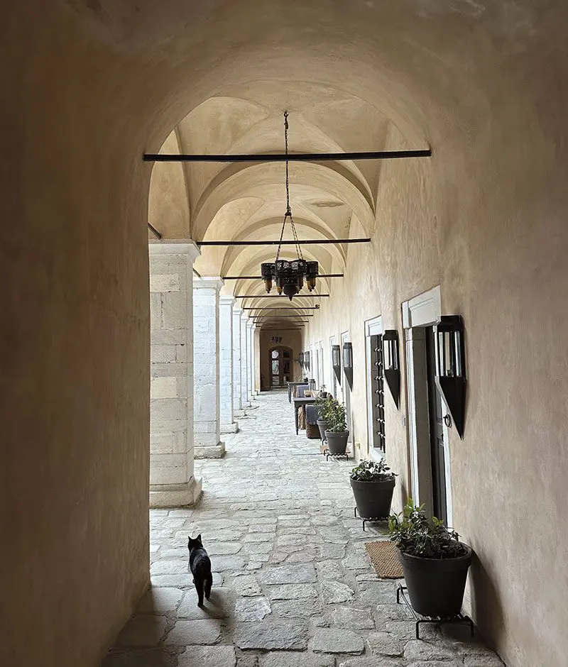 Imaret is not Missirian’s home, but when you see her moving through the spaces, stopping to stroke one of the resident cats, loyally followed by Lalique, her Yorkshire terrier, it’s clear that she feels deep affection for the place, treating it with the utmost respect.