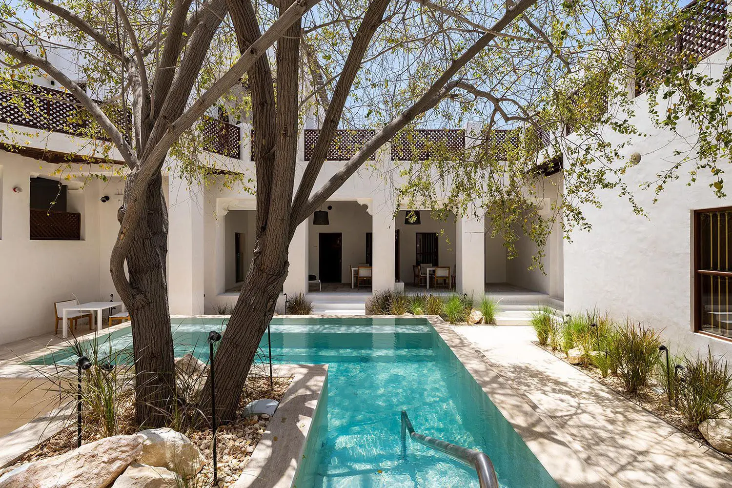 Once the home of a pearl trader—after whom it is named—Bait Khalid Bin Ibrahim offers a calm, contemporary feel, 12 new rooms and suites, shaded outdoor sitting and lounging areas, and inviting pools, one in each house.